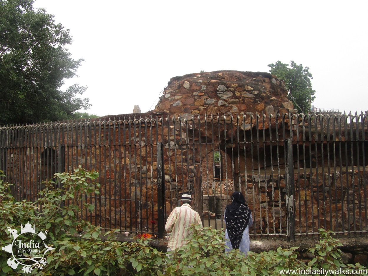 In the twentieth century, this fortress of Firoz Shah Tughlaq developed a curious reputation as the abode of spirits or djinns, who had to be appeased. Every Thursday hundreds of local people from the neighborhood come to offer milk and grain, light candles and incense, and leave little strips of thread or colored cloth, often with petitions scribbled on bits of paper, at various places within the complex.
