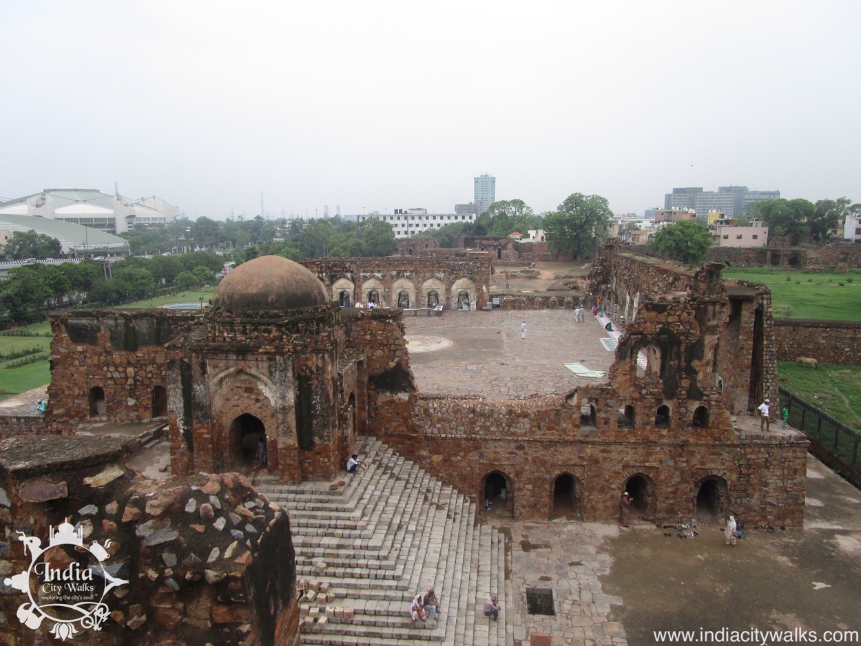 Also known as Kushak-e-Firoz, Firoz Shah Kotla was built in 1354 and lay along the banks of the river Yamuna (the river has since changed its course eastwards). Little remains of Firozabad today because two subsequent cities of Delhi-Sher Shah’s capital in the 16th century and Shahjahanabad in the 17th century adjoined the boundaries of this city. Consequently, the buildings of Firozabad were broken up to supply building materials for these new cities. ‘Delhi Walks’ shall walk you through significant structures that have survived, such as the Kalan Masjid which fell within the walls of Shahjahanabad, the citadel (Firoz Shah Kotla) and its prominent buildings. ‘Delhi Walks’ shall also point out the ruins of the palaces, pillared halls, mosques, a pigeon-tower and a baoli (stepwell) in the citadel, and conduct storytelling sessions around these pit stops that will give you a better sense of the vision of Firoz Shah Tughlaq and help you connect with his thought line through his built heritage that has managed to survived the test of time. The main palaces held pride of place along the riverfront, to which a flight of stairs led down. All around were enclosing walls pierced by a double row of arrow slits, with circular bastions at the corners.