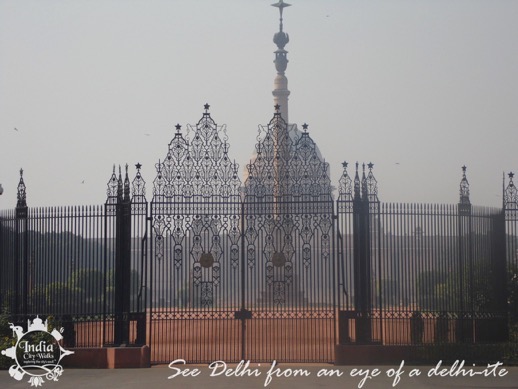 A New Delhi Tour with ‘Delhi Walks’ begins at India Gate or All India War Memorial on the Rājpath (king’s way), which was built to commemorate the undivided British Indian Army who died in the World War I (1914-21). It was also designed by Sir Edwin Lutyens. A stone’s throw away from India Gate lays the jewel in the crown of New Delhi. The Rashtrapati Bhavan or President House built in 1919 to 1925 is located towards the western end of Rājpath. Under Lutyens, it was designed as the British Viceroy’s residence. ‘Delhi Walks’ shall point out various makers of syncretic architecture that are prominent on the spectacular red and buff sandstone facade of this heritage building. With 340 well decorated rooms, a durbar hall, Ashoka hall, State dining room and large number of guest suites and the private apartments, the President’s Estate truly is the magnum opus of Lutyens’ New Delhi saga.