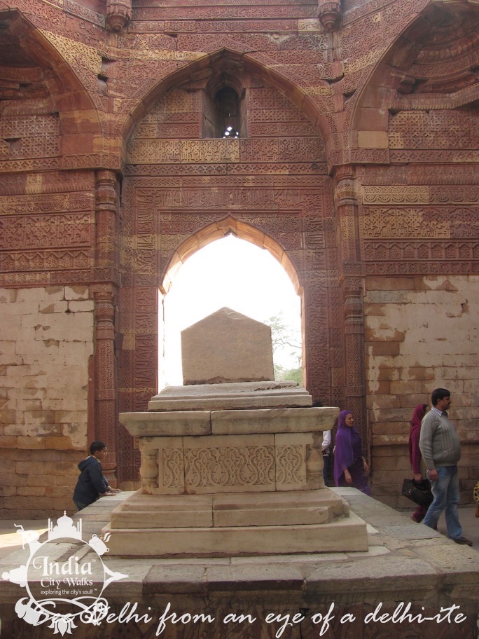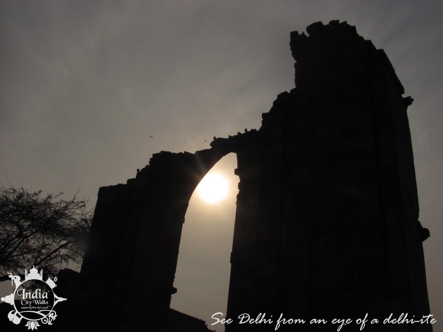 From the first mosque of Delhi, we move to one of the finest example of the early Sultanate style of architecture in India. Elegant proportioned and magnificently decorated, Alai Darwaza was built as the main gateway to the ambitious extension of the Quwwat-ul-Islam Mosque in the early fourteenth century. ‘Delhi Walks’ won’t let you miss out on its bulging dome, horse-shoe shaped arches and the beautiful red sandstone and marble dressing. Also noteworthy is the fact theentire gateway except the dome is carved with intricate geometrical patterns and inscriptions in naskh characters. ‘Delhi Walks’ shall also point out the lotus buds on the arches.